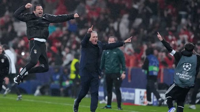然而,具体到了比赛里,穆里尼奥却并没有给皇马留几分面子的意思。开场后不久,普雷斯蒂亚尼在禁区内便被贝林厄姆放倒,主裁判果断判罚了点球,但经var提醒,点球被取消了。到了第30分钟,姆巴佩接劳尔-阿森西奥传中头球破门,但本菲卡这边攻势如潮,谢尔特鲁普在几分钟后完成破门,对皇马的进攻做出了回应,帕夫利季斯在伤停补时阶段罚入点球,则是让皇马带着落后的比分返回了更衣室。到了下半场,谢尔特鲁普梅开二度,姆巴佩再入一球紧咬比分,随着劳尔-阿森西奥再吃一张红牌,皇马直接晋级前八的梦想看起来已经破碎了。